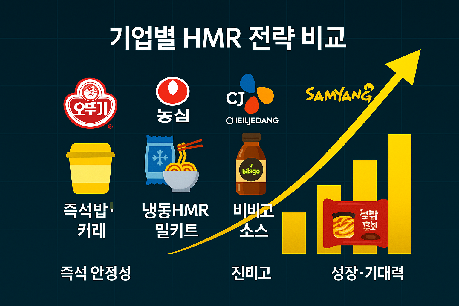 특히 2025년 현재, 오뚜기·농심·CJ제일제당·삼양식품은 단순히 방어주에 머무르지 않고, HMR(가정간편식)이라는 새로운 성장 동력을 통해 글로벌 무대에서 도약하고 있습니다.