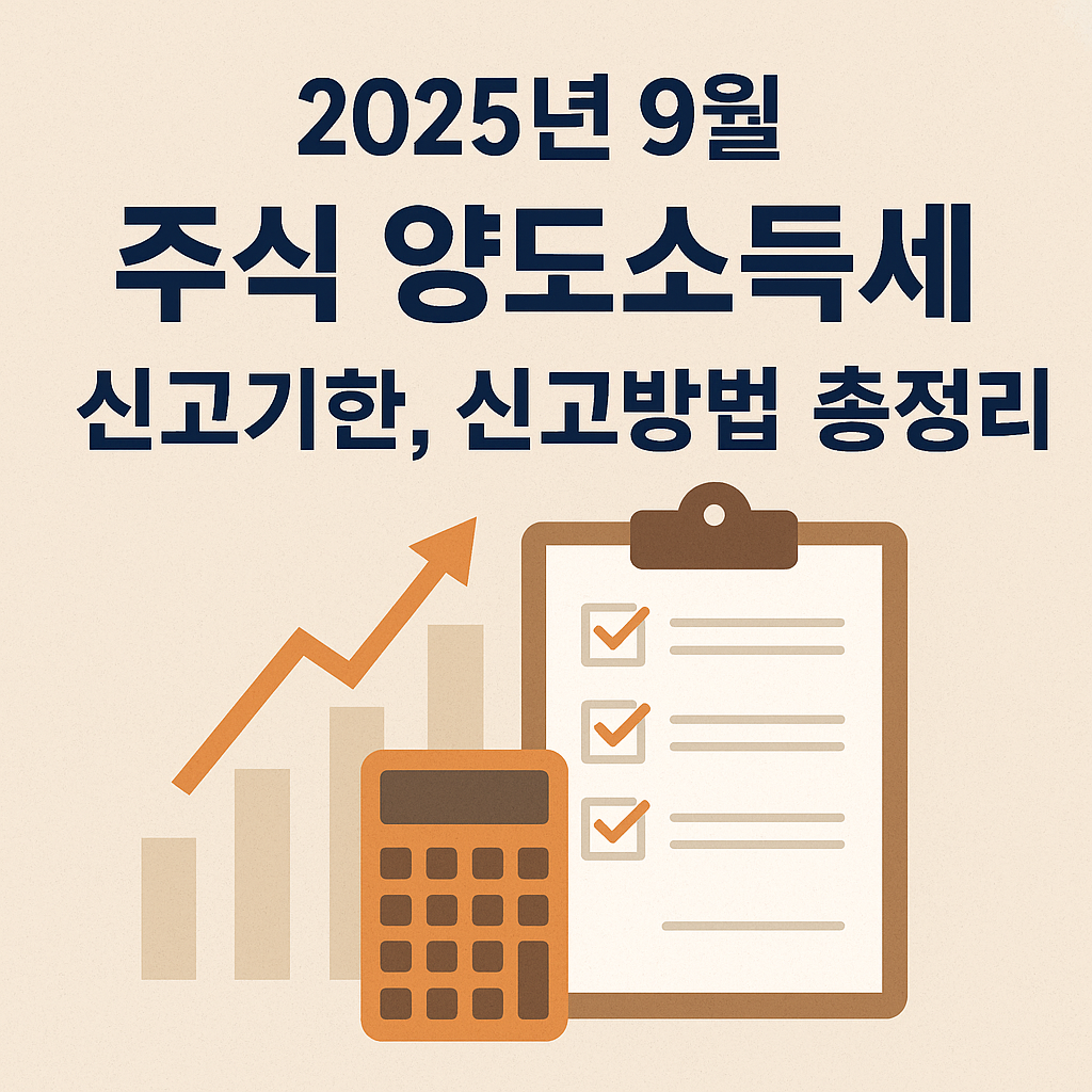 2025년 9월 주식 양도소득세 최신판. 신고기한, 대주주 기준, 장외·비상장 신고방법, 절세 전략까지 한눈에 확인하세요.